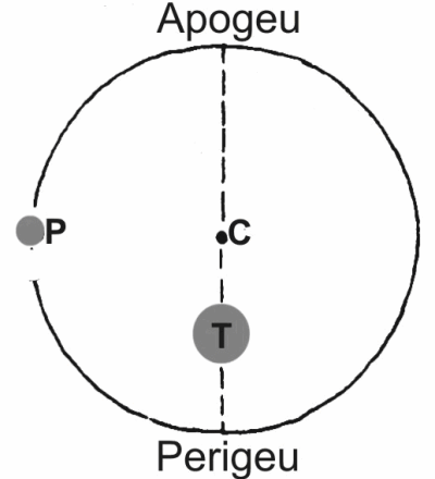 Para explicar a diferença de velocidades relativamente às estrelas de fundo, a Terra foi retirada pela primeira vez por Hiparco, do centro da esfera ocupando uma posição excêntrica. Desse modo, mesmo que o planeta descreva um movimento circular uniforme em torno do centro de curvatura, visto da Terra, esse movimento em relação às estrelas de fundo parecerá ocorrer a velocidades diferentes quando o corpo estiver no perigeu (ponto mais próximo da Terra) e no apogeu (ponto mais afastado da Terra).