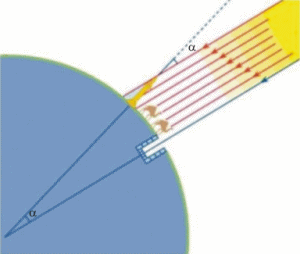 Figura 16 - Se a Terra fosse plana, o ângulo de incidência dos raios solares seria igual em toda a superfície da Terra. |