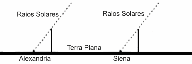 Por que seriam as sombras diferentes, no mesmo dia e à mesma hora? Eratóstenes intuiu correctamente a resposta: porque a terra é redonda. Se fosse plana, as sombras seriam necessariamente iguais.