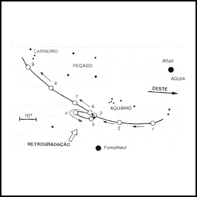 Uma vez que os astros "errantes" parecem errar entre os "fixos" de noite para noite ao longo do ano, foi-lhes dado o nome de planetas (derivado do verbo grego equivalente a "errar"). Os sete "planetas" - o Sol, a Lua, Mercúrio, Vénus, Marte, Júpiter e Saturno - moviam-se individualmente entre as estrelas fixas, com velocidades diferentes e com um movimento que aparentemente parecia aleatório (como se verificava nas retrogradações), daí que se dissesse que erravam (Figura 13).