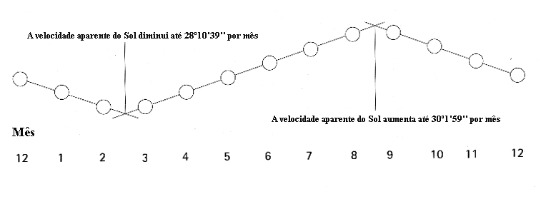 Os babilónicos verificaram que o Sol na sua viagem aparente em relação ao céu de fundo não mantinha uma velocidade constante. Durante metade do ano a velocidade do Sol aumenta de forma constante até atingir um máximo e na outra metade do ano diminui até atingir um mínimo.