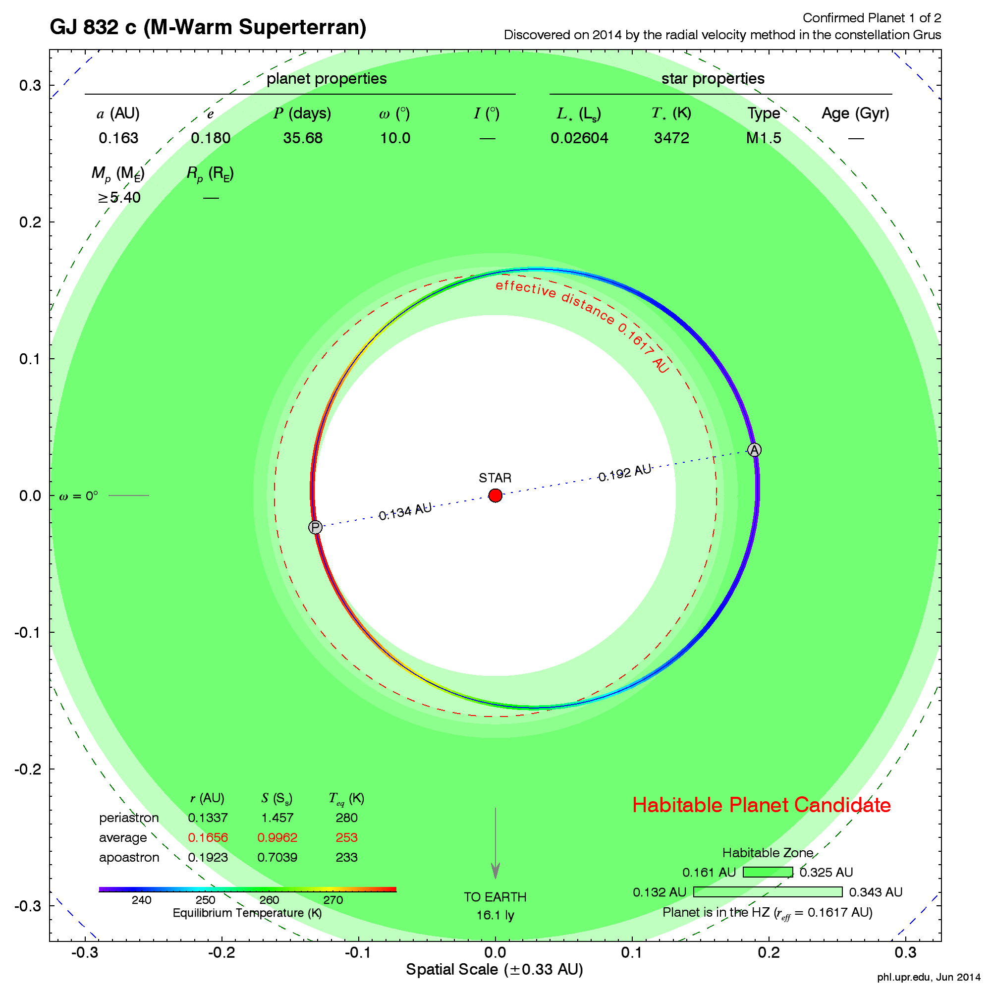 Análise orbital de Gliese 832c, um mundo potencialmente habitável em torno da anã vermelha Gliese 832. Gliese 832c orbita a fronteira interior da zona habitável (estimativa conservadora).