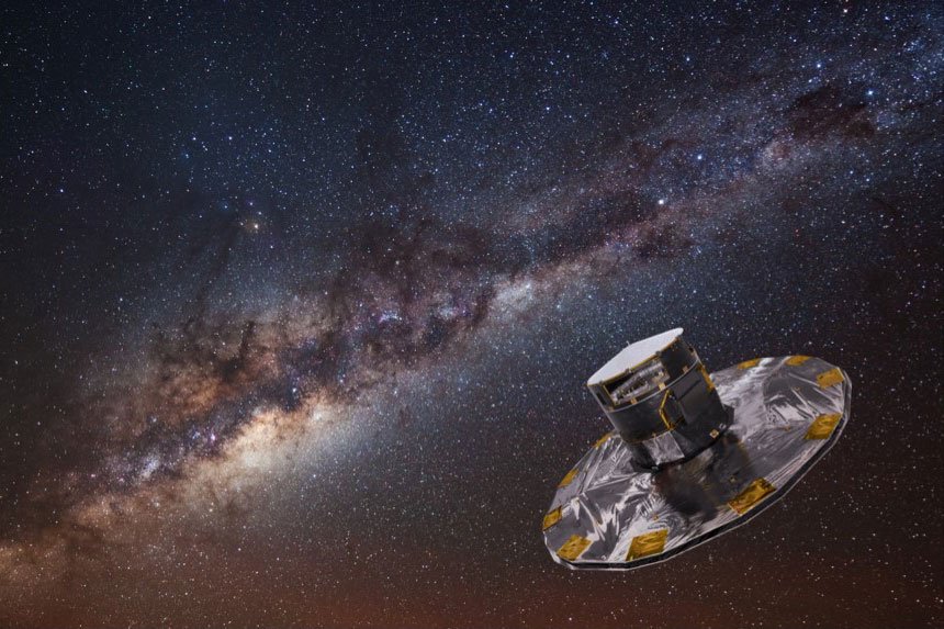 satélite Gaia, com a Via Láctea no plano de fundo.