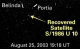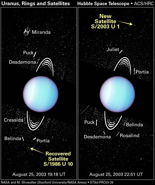 Mas depois em 2003, imagens obtidas pelo Telescópio Espacial Hubble conseguiram avistar um objecto onde S/1986 U 10 se pensava estar, confirmando a sua existência. A lua ainda não tem nome, mas agora que já foi confirmada espera-se que recebe um nome nos próximos anos. |