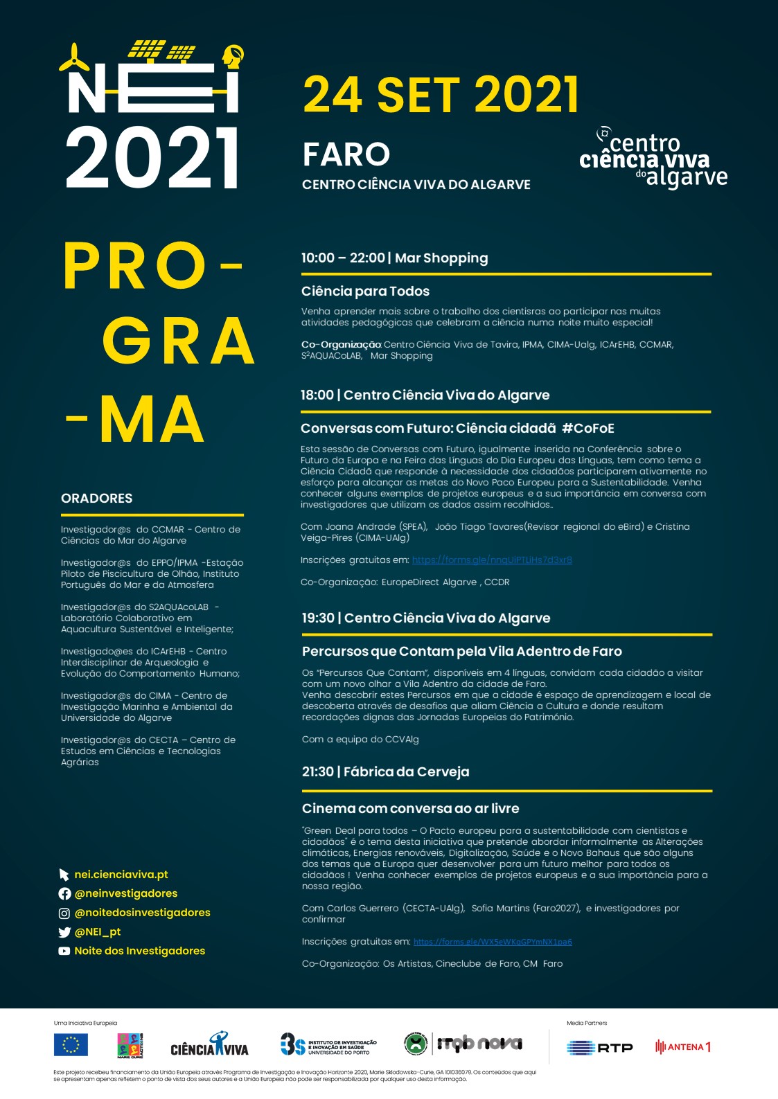 Investigadores: a confirmar das seguintes entidades/projectos - CCMAR - Centro de Ciências do Mar do Algarve; EPPO/IPMA -Estação Piloto de Piscicultura de Olhão, Instituto Português do Mar e da Atmosfera; S2AQUAcoLAB - Laboratório Colaborativo em Aquacultura Sustentável e Inteligente; ICArEHB - Centro Interdisciplinar de Arqueologia e Evolução do Comportamento Humano; CIMA - Centro de Investigação Marinha e Ambiental da Universidade do Algarve; ALIMAR - Ação Lixo Marinho
