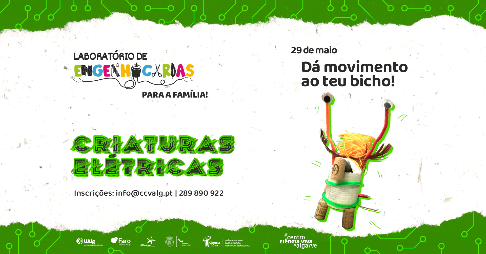 Vamos comemorar o dia Nacional da Energia explorando alguns circuitos elétricos. Dá asas à tua imaginação e cria um animal incrível que se irá movimentar sozinho com a energia de um simples motor.