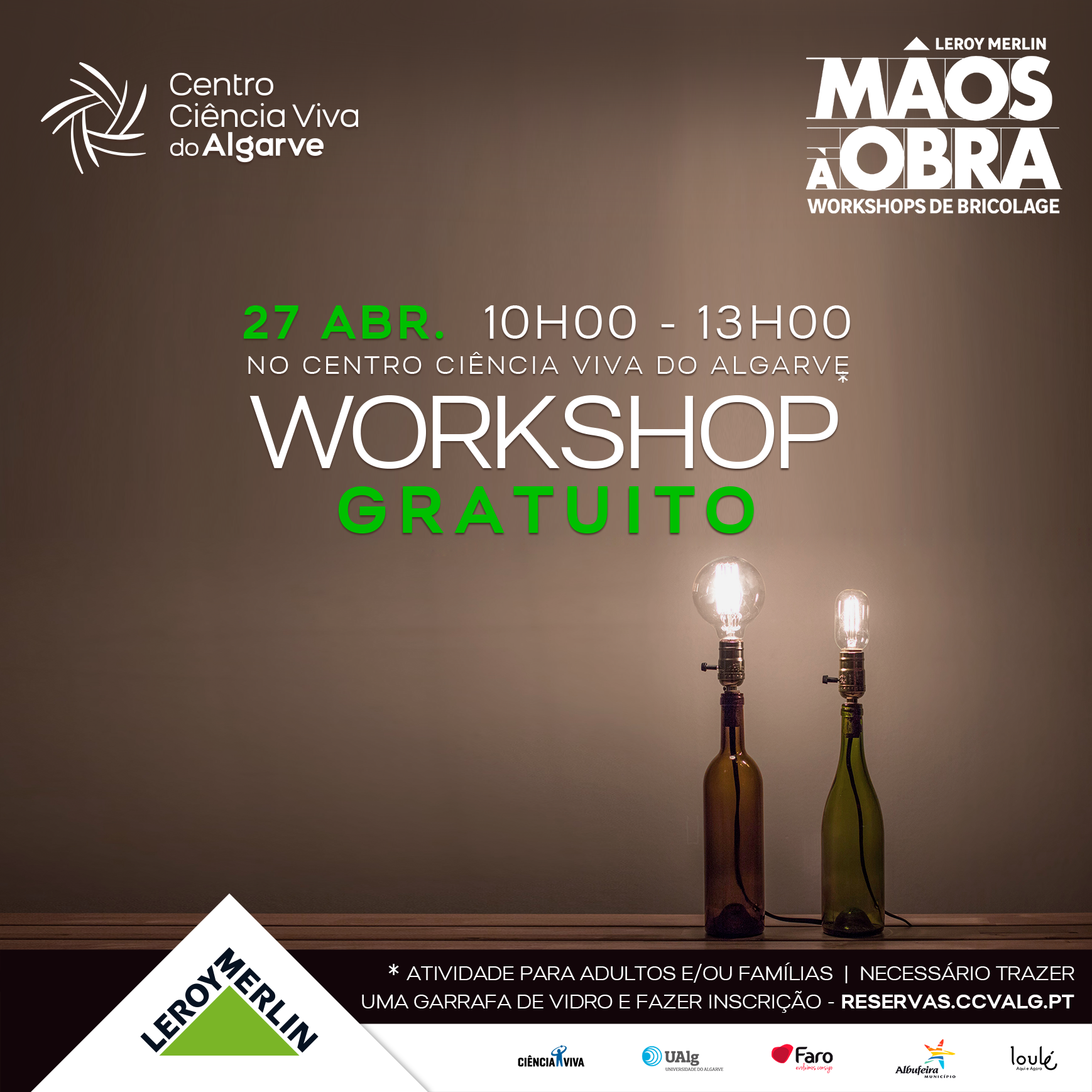 No dia 13 de Abril das 10h à 13h teremos um workshop no Centro Ciência Viva do Algarve com o Leroy Merlin Loulé .