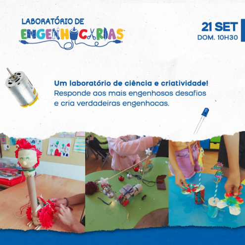 Para crianças dos 6 aos 12 anos, o Laboratório de Engenhocarias visa estimular o gosto pela ciência, através da realização de atividades lúdicas num ambiente de aprendizagem descontraído.