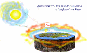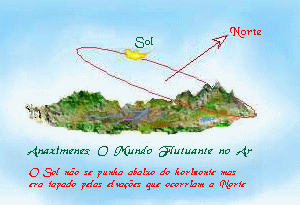 Os primeiros cosmólogos gregos que são conhecidos a partir de documentos escritos são da próspera ilha grega de Jónia. Anaximenes sugeria que o Sol não se punha, mas apenas era tapado por zonas mais elevadas que existiam a Norte (Figura 8). Claro que isto não explicava porque existia a noite cerrada.