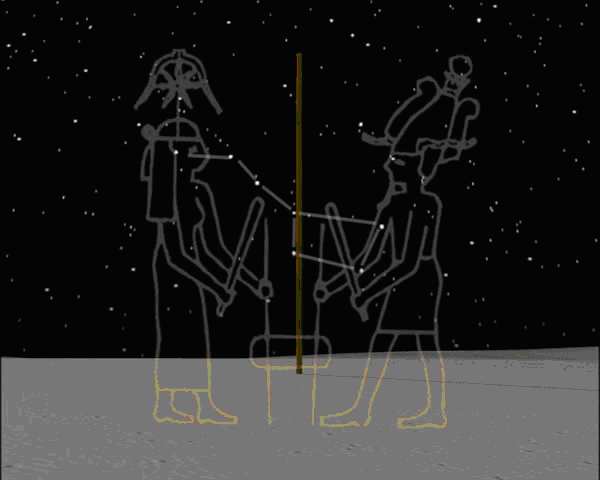 Os egípcios tinham um sistema dos mundos profundamente mitológico. No entanto, tinham noções observacionais muito concretas e corretas; de facto, verificaram que o céu possuía um movimento aparente em torno do Pólo Norte Celeste. Devido à precessão do eixo da Terra, a Estrela Polar era nessa altura a estrela “Thuban”, na constelação de Dragão.