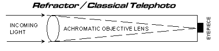 Desvantagens dos refratores: Algumas cores secundárias (“aberração cromática”) ainda visíveis em todos menos nas melhores unidades; instrumentos com grandes aberturas podem ser enormes; o mais caro dos três tipos (geralmente por uma grande margem); associado com os terríveis equipamentos à venda nas lojas mais comuns (em algumas de fotografia e hipermercados).