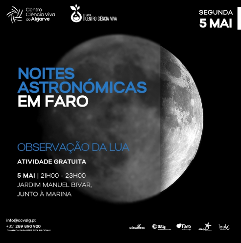Em conjunto com o Centro Ciência Viva de Tavira iremos realizar várias sessões de observação da lua nos seguintes horários e locais: