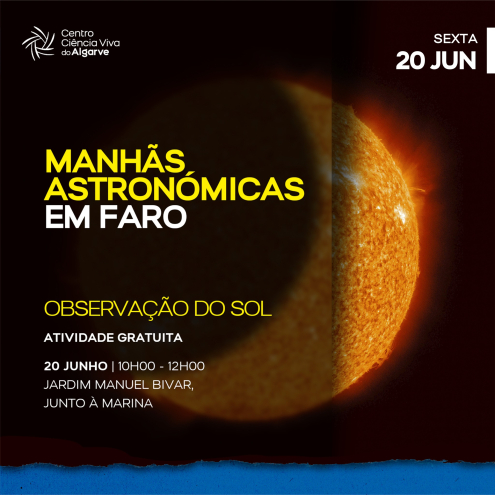 Em conjunto com o Centro Ciência Viva de Tavira iremos realizar várias sessões de observação do Sol nos seguintes horários e locais: