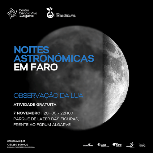 Em conjunto com o Centro Ciência Viva de Tavira iremos realizar várias sessões de observação da lua nos seguintes horários e locais: