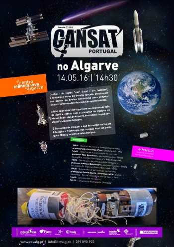 CanSat - do inglês "can" (lata) + sat (satélite), é também o nome do desafio lançado anualmente aos alunos do Ensino Secundário para projetar e construir um modelo funcional de microssatélite. É no sentido de divulgar o que de melhor se faz em Educação e Tecnologia nas escolas aqui tão perto que o CCVAlg se junta a estas equipas.